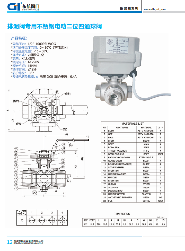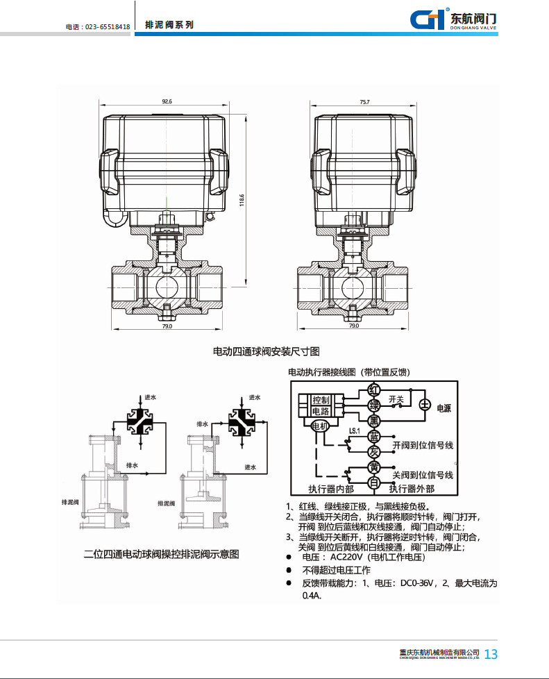排泥閥用不銹鋼電動動換向閥 帶開關到位信號反饋